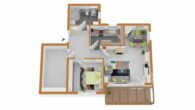 Das große helle Wohnzimmer rundet die Wohnfläche ab. Es bietet genügend Platz für einen Esstisch und hat einen direkten Zugang zur der Süd/West Terrasse. Diese ist zu einem großen Teil überdacht.
